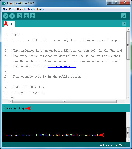 3、依次点击 File -> Example -> 01.Basics -> Blink 即可打开示例程序。
